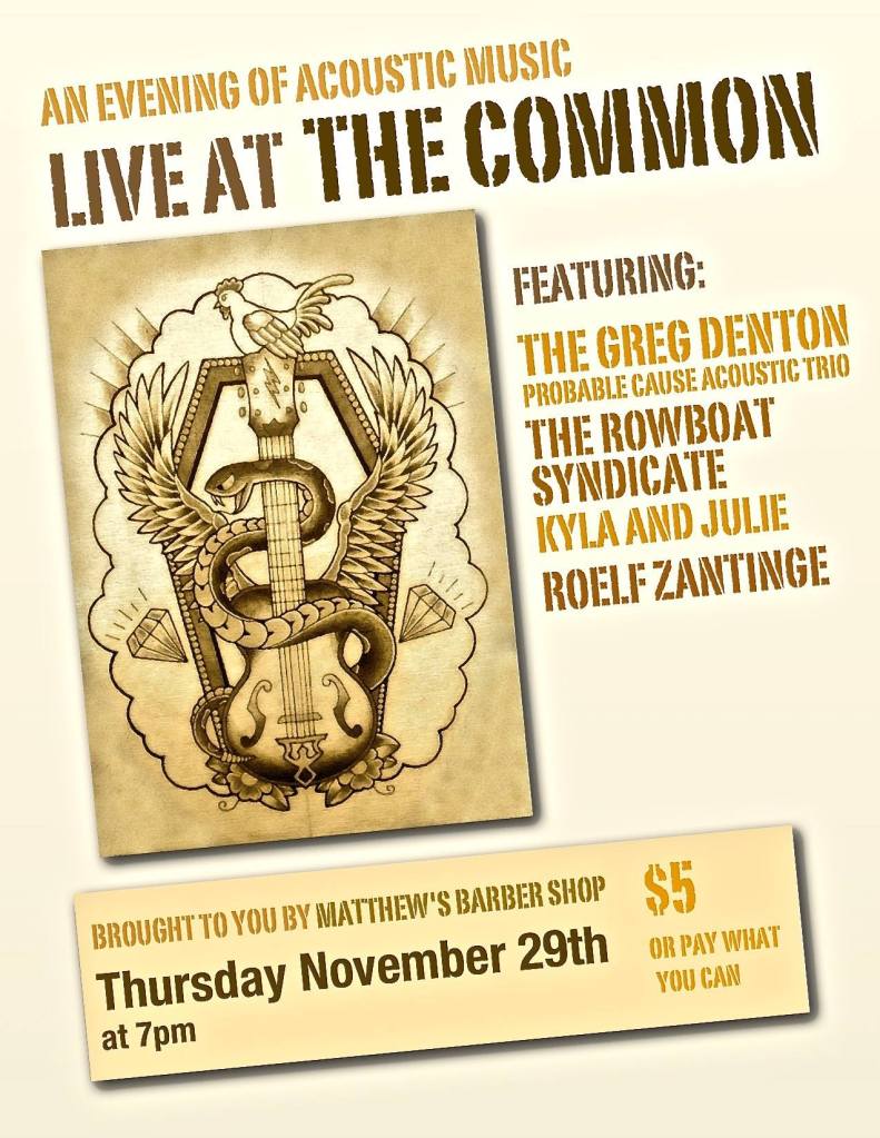 Sun Jan 12, 2020 at The Wooly PubSat Oct 26, 2019 at The Cornerstone with The Ever-Lovin’ Jug BandFriday Aug 16, 2019 (Greg Denton solo) with Jesse Parent at The CornerstoneSaturday July 20, 2019 at The Wooly PubSummer Solstice! Fri June 21, 2019 with Paul Cammaert at The Cornerstone. May 10, 2019 with BanjoGoBoom! at Silence, GuelphMarch 28, 2019 at The Common with Bad Night at The Whisky and The Breakfast Kid.Sunday March 3, 2019. Mo’ Kauffey’s Once On a Blues Sunday (OOBS) at The Wooly PubKate Anderson-Bernier Book Launch Party at The Western Hotel. Sun Feb 24, 2109.Kate Anderson-Bernier Book Launch Party at The Western Hotel. Sun Feb 24, 2109.Sat Jan 19, 2019 at The Wooly PubThurs Nov 29, 2018 at The Common with The Rowboat Syndicate, Kyla and Julie, and Roelf ZantingeOct 21, 2018 at The Sip Club with Jesse Parent & Steve WoodSat Sept 8, 2018 at The Wooly PubSun Aug 5, 2018 – Mo’ Kauffey’s Once On a Blues Sunday (OOBS) at The Wooly PubSat June 16, 2018 at The Wooly PubSun June 3, 2018 (Greg Denton solo) with Jesse Parent at The Sip ClubFeb 3, 2018 at The Wooly PubSat Jan 20, 2018 – The Cornerstone 16th Anniversary with Jesse Bell SmithSun Sept 3, 2017 – Greg Denton solo with Ian Reid and Minnie Heart for Mo’ Kauffey’s Once On a Blues Sunday (OOBS) at The Wooly PubMay 7, 2017 – Mo’ Kauffey’s Once On a Blues Sunday (OOBS)Sun April 23, 2017 at Matthew’s Barber Shop (Greg Denton solo) with Minnie Heart.April 1, 2017 at The Cornerstone with Onion Honey.Jan 8, 2017 at The CornerstoneDec 10, 2016 at The Wooly PubJune 26, 2016 at The Cornerstone with Steve MontyroSun April 10, 2016 at The Cornerstone with Wildflower HoneySat Nov 28, 2015 at The Cornerstone with Gunner & Smith